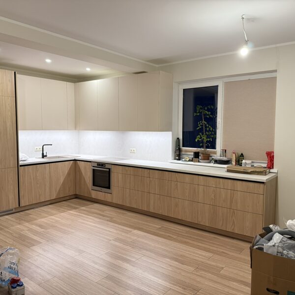 - virtuves mēbeles no lamināta, finierēta MDF, saplākšņa vai akrila